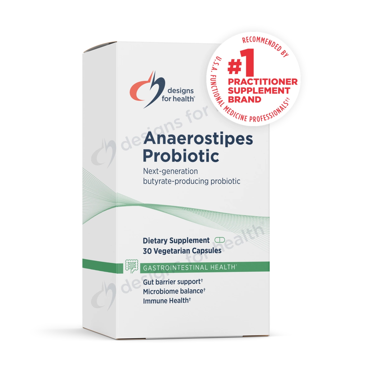 Anaerostipes Probiotic is a once-daily formula featuring a live, next-generation strain that is exclusive to the Designs for Health (DFH) brand. Anaerostipes caccae is a keystone probiotic preclinically shown to promote direct butyrate production in the lower GI tract for targeted support.* Butyrate is an important molecule that fuels intestinal cells, supports a healthy gut barrier, and promotes digestive comfort and immune health.* Anaerostipes naturally lives in a healthy gut microbiome, where it can turn dietary fiber into butyrate.* However, for some individuals, this keystone strain may be present in lower amounts.* This product delivers Anaerostipes to the gut to help promote continuous butyrate production, microbiome diversity, daily gastrointestinal (GI) comfort, healthy digestion, and mealtime confidence.* DFH’s Anaerostipes Probiotic features a delayed-release technology for optimal survivability from stomach acid and proper timed release of the probiotic in the lower GI tract.