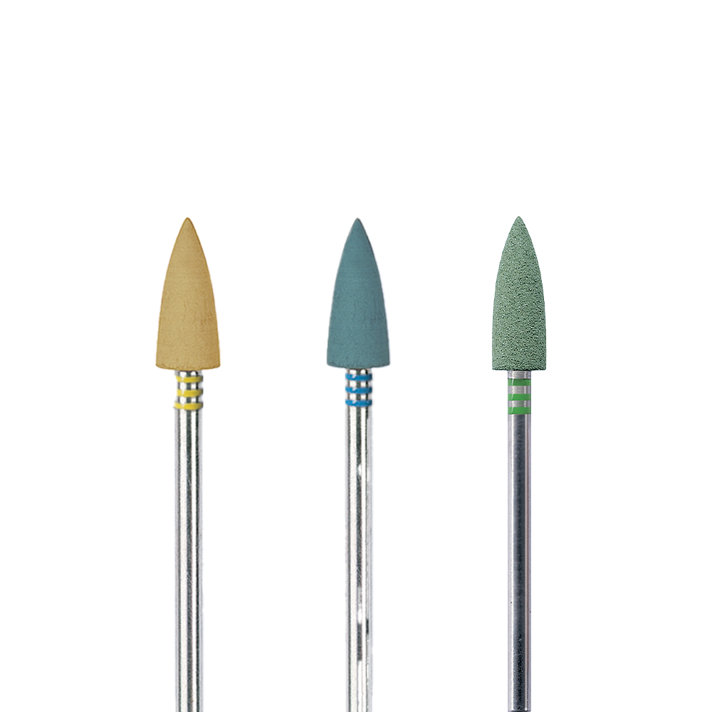 A 3-step diamond polishing system is suitable for all porcelain fillings and partial and full-crown restorations. Polishers with natural diamond grit are suitable for finishing, polishing, and high-luster polishing of porcelain surfaces.