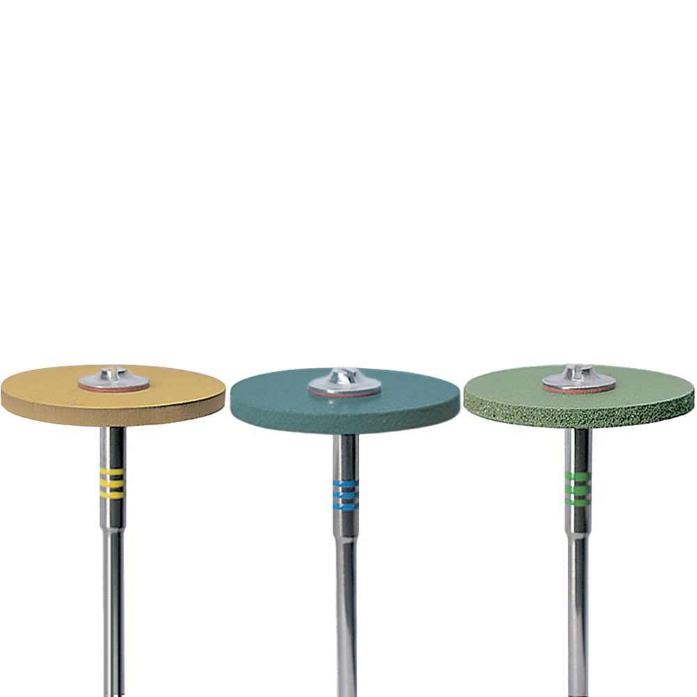 A 3-step diamond polishing system is suitable for all porcelain fillings and partial and full-crown restorations. Polishers with natural diamond grit are suitable for finishing, polishing, and high-luster polishing of porcelain surfaces.