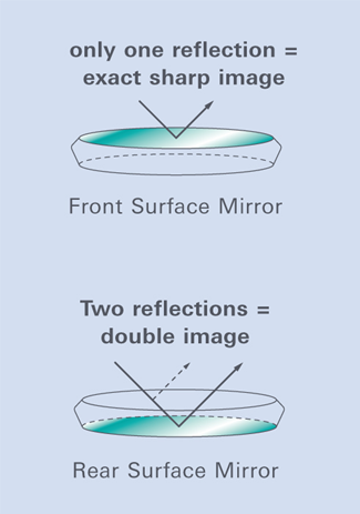 Front Surface Mirror: only one reflection eliminates the so-called “ghost image” – exact sharp image.