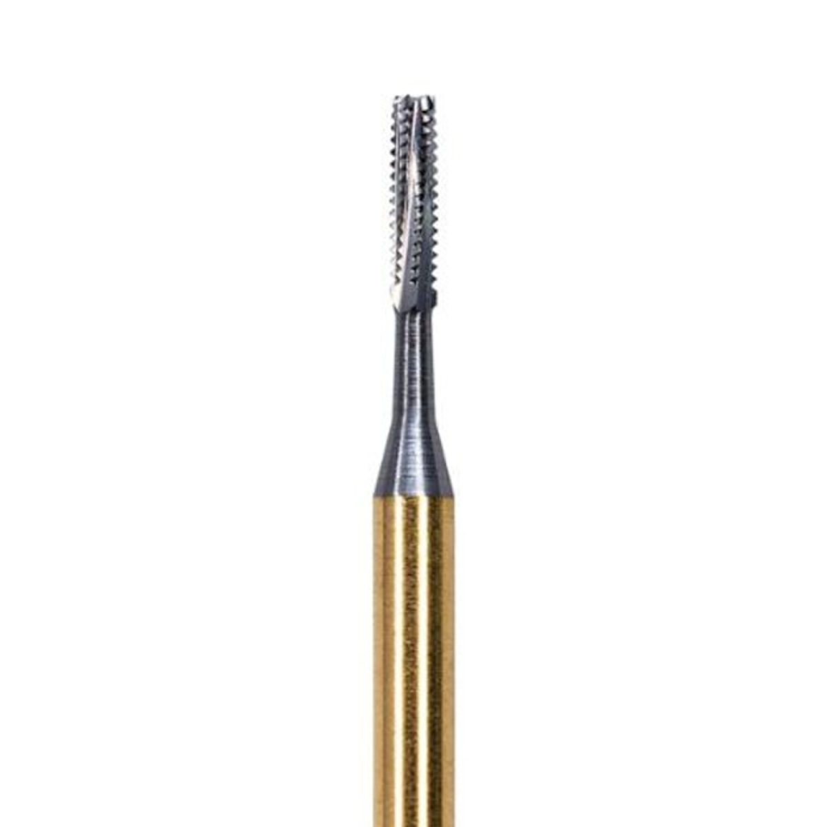 Special blade geometry featuring fine cross-cuts and unique neck design produces a bur that quickly cuts metal with reduced chatter, breakage, and improved control.